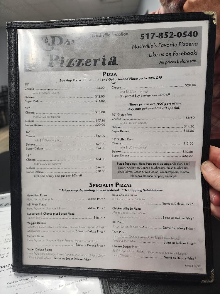 R&D's Pizzeria offers an extensive menu designed to please every palate. Classic pizza options include build-your-own choices with various toppings. Specialty pizzas like the BBQ chicken and taco pizza appeal to adventurous eaters. Pasta lovers can enjoy hearty dishes such as baked ziti and creamy Alfredo. The menu also features delicious subs like the deluxe sub and steak & cheese. For those craving Mexican flavors, burritos and quesadillas are a must-try. With a diverse selection, including salads, appetizers, and meals, there's something for everyone here. Don't forget to check out their kids' menu; it's perfect for family outings. R&D's Pizzeria combines quality and variety, ensuring a satisfying dining experience.